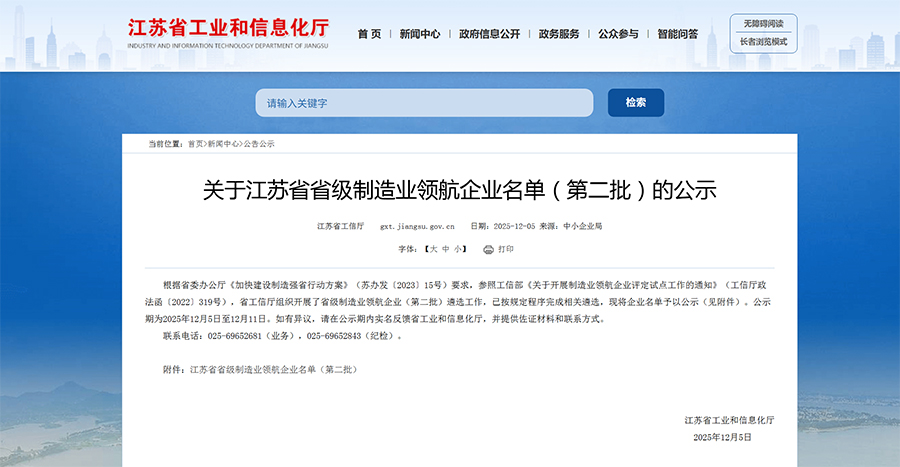 近日,江苏省工信厅公布了第二批省级制造业领航企业名单,全省仅 55 家制造业企业入选。中集安瑞环科技股份有限公司(简称 “中集环科”)凭借自身先进的制造水平、持续的创新能力和显著的行业带动作用等综合实力,荣登该重磅榜单。